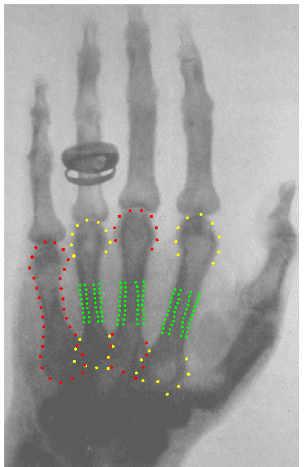 - The entire contour, rather than just the shafts, is reconstructed, which allows the measurement region to be placed relative to the ends of the bone and with a size scaled to the bone length. Hence, the measurement regions are anatomically consistent over the complete age span from infants to adults.