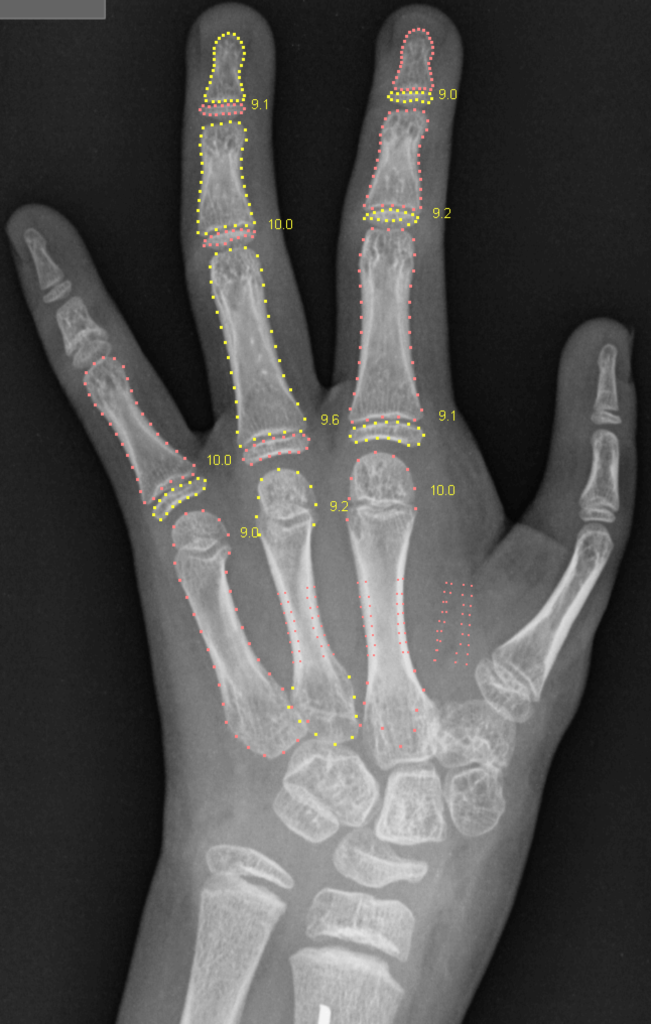 The new paper published by Scientific Reports focuses on this important aspect. It describes how BoneXpert’s self-validation mechanism was designed to not only validate the image as a whole but also to validate that each bone is properly recognised. BoneXpert gives visual feedback on the analysis of each bone, making the validation transparent, or “explained”. BoneXpert rejects only 0.4% of valid hand X-rays, and its accuracy (0.33 y) is far better than the human accuracy (0.58 y), and the system makes 12 times fewer significant errors (>1.5 y) than a human rater, showing that the self-validation effectively curbs the tail of the error distribution.