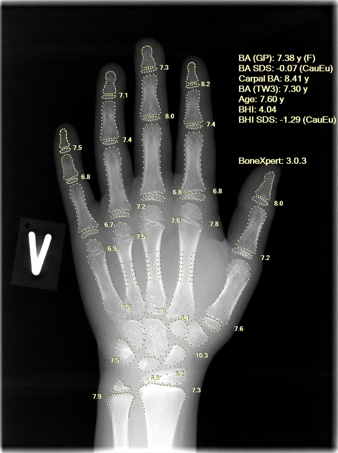 BoneXpert is a software for automated measurement of bone age from a child's hand X-ray image. 200 hospitals have already integrated this tool seamlessly into their workflow for more consistent readings when dealing with growth disorders, optimisation of treatments and state-of-the-art adult height prediction.